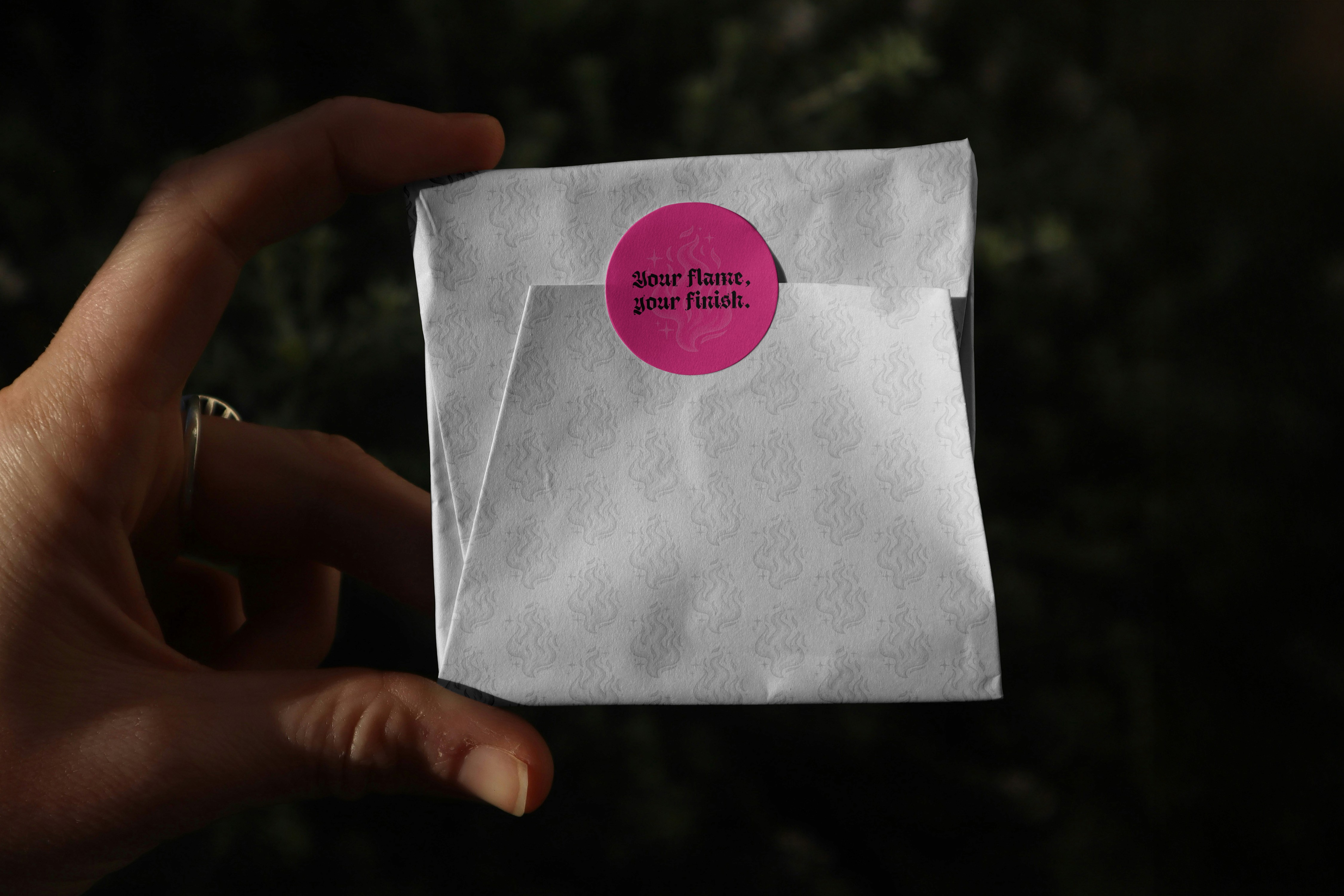 Drawing inspiration from intricate illustration styles, we experimented with various motifs including skeleton hands, moths, and angels before ultimately choosing a flame as the lead icon - a symbol of passion, defiance, and bold individuality.